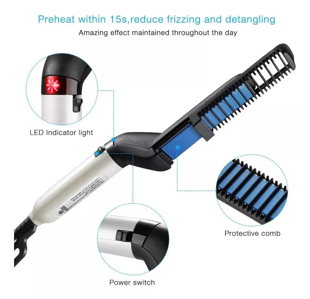 Seja o mestre do seu visual com o Pente Elétrico Modelador Alisador para Barba e Cabelo Masculino!