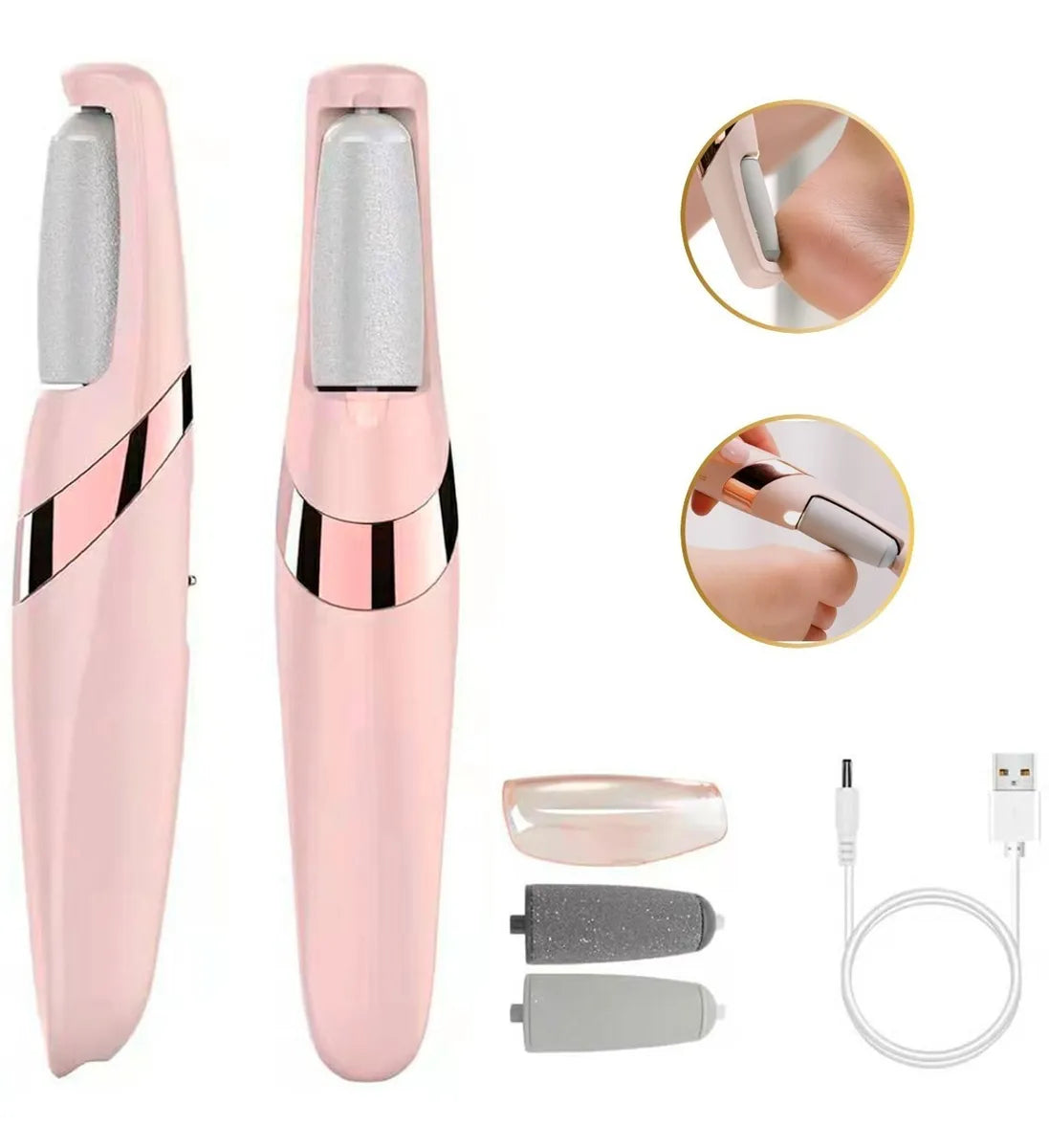 Remova calos e calosidades facilmente com seu design portátil e elétrico. Deixe seus pés macios e lisos sem esforço!